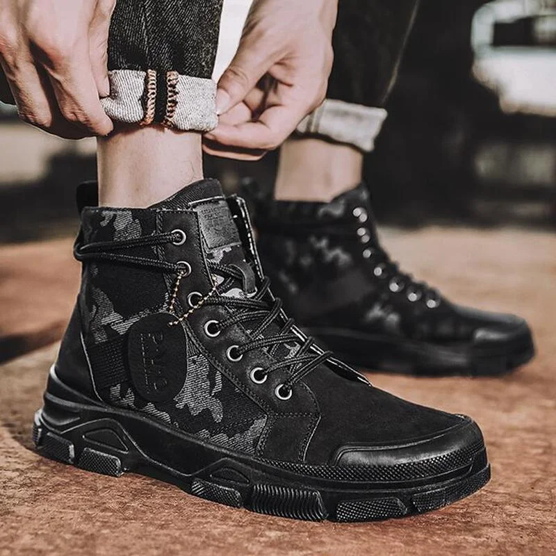 Ботинки Martin Осенняя обувь мужские модные холщовые Высокие Мужские ботинки в Корейском стиле Студенческая модная обувь камуфляжные ботинки для инструментов
