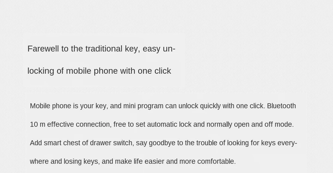 Ваш телефон является ключом. После привязки вашей учетной записи вы никогда не будете беспокоиться о потере ключей. Его можно легко открыть через соединение Bluetooth. Книжный шкаф или прикроватный столик или шкаф для файлов, он идеально подходит.