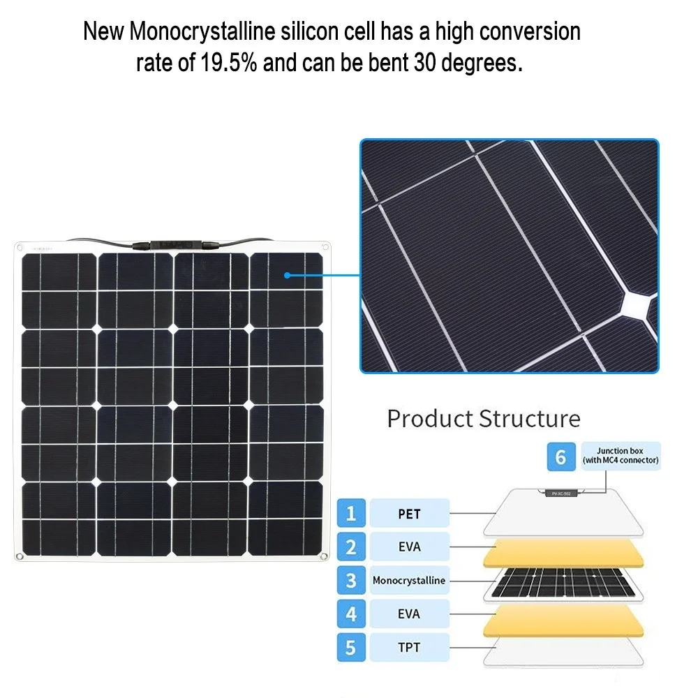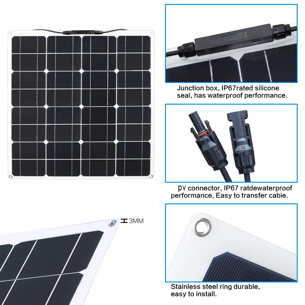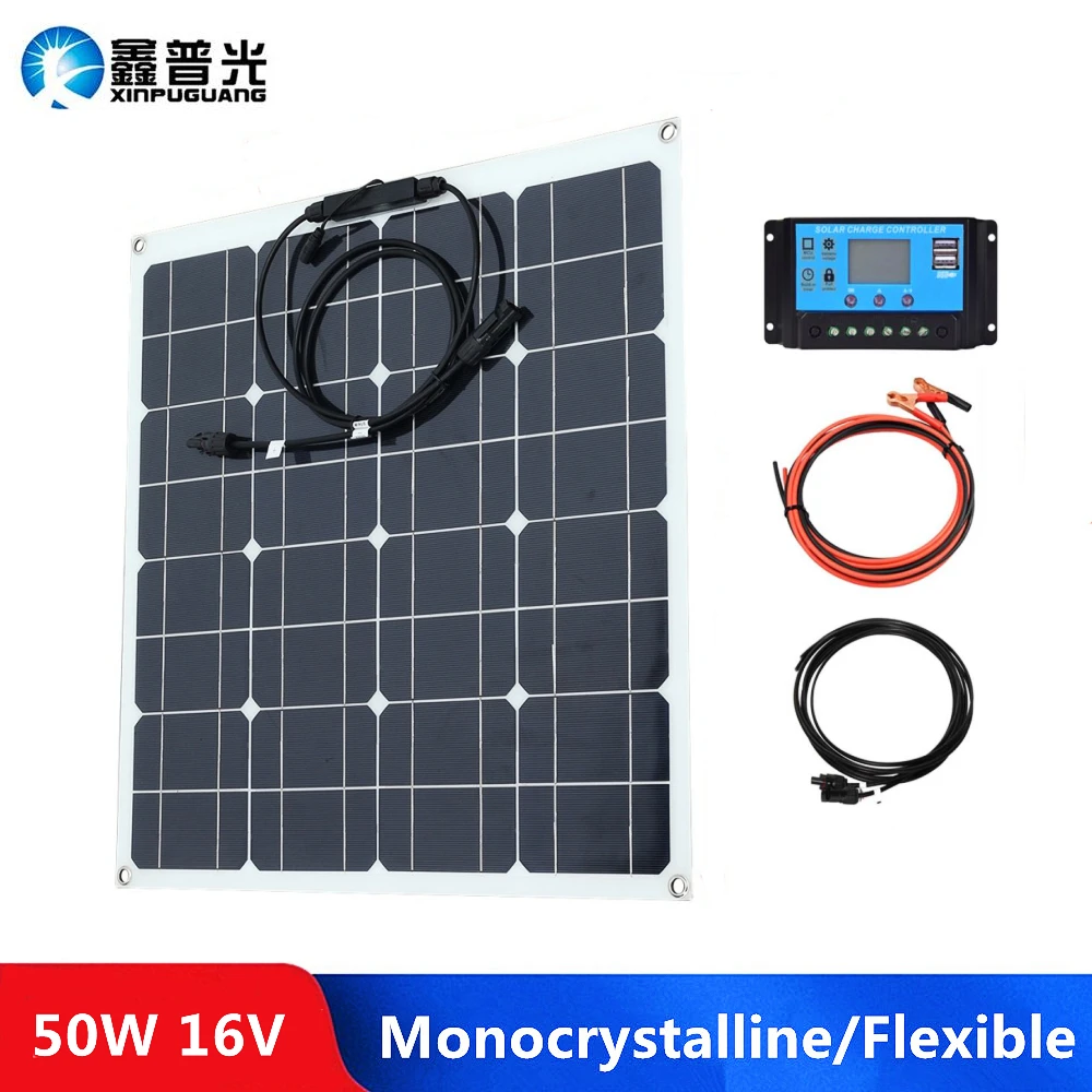 Гибкая система солнечных панелей 16 В, 100 Вт, Высокоэффективная монокристаллическая ячейка, 2 шт., 50 Вт, солнечная панель для дома, крыши, RV, автомобиля, лодки