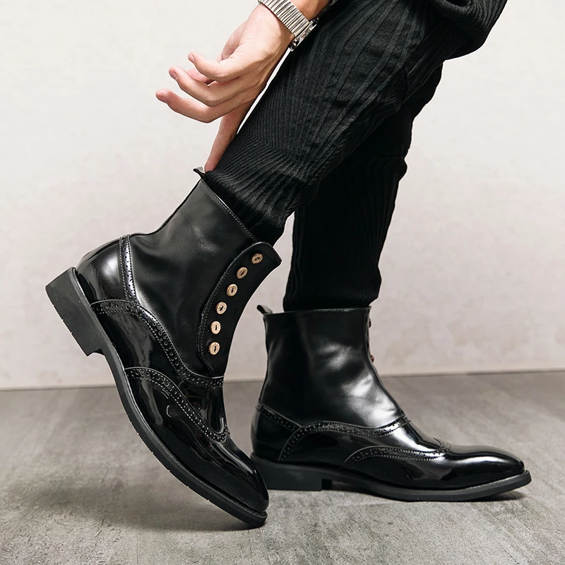 Мужские кожаные ботинки YRZL 2021, мужские ботинки, осенняя модная обувь, броги, удобная черная, зеленая защитная обувь, ботильоны, мужские ботинки Sh