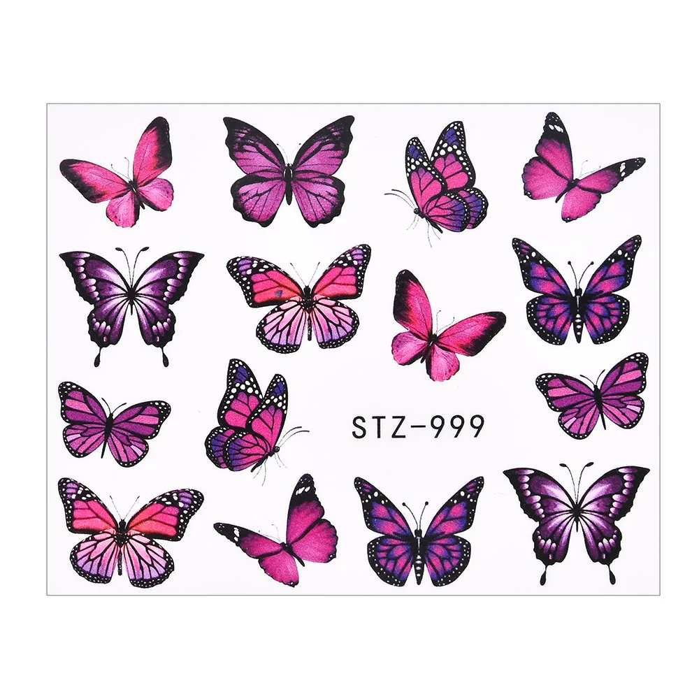 Наклейки для ногтей, розовые и фиолетовые бабочки, лак для ногтей, ...