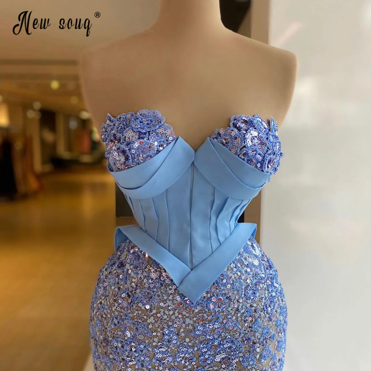 Блестящий светильник Небесно голубая Русалка вечернее платье 2021 бисером блестками милое Выпускное Платье Vestidos De Fiesta для женщин