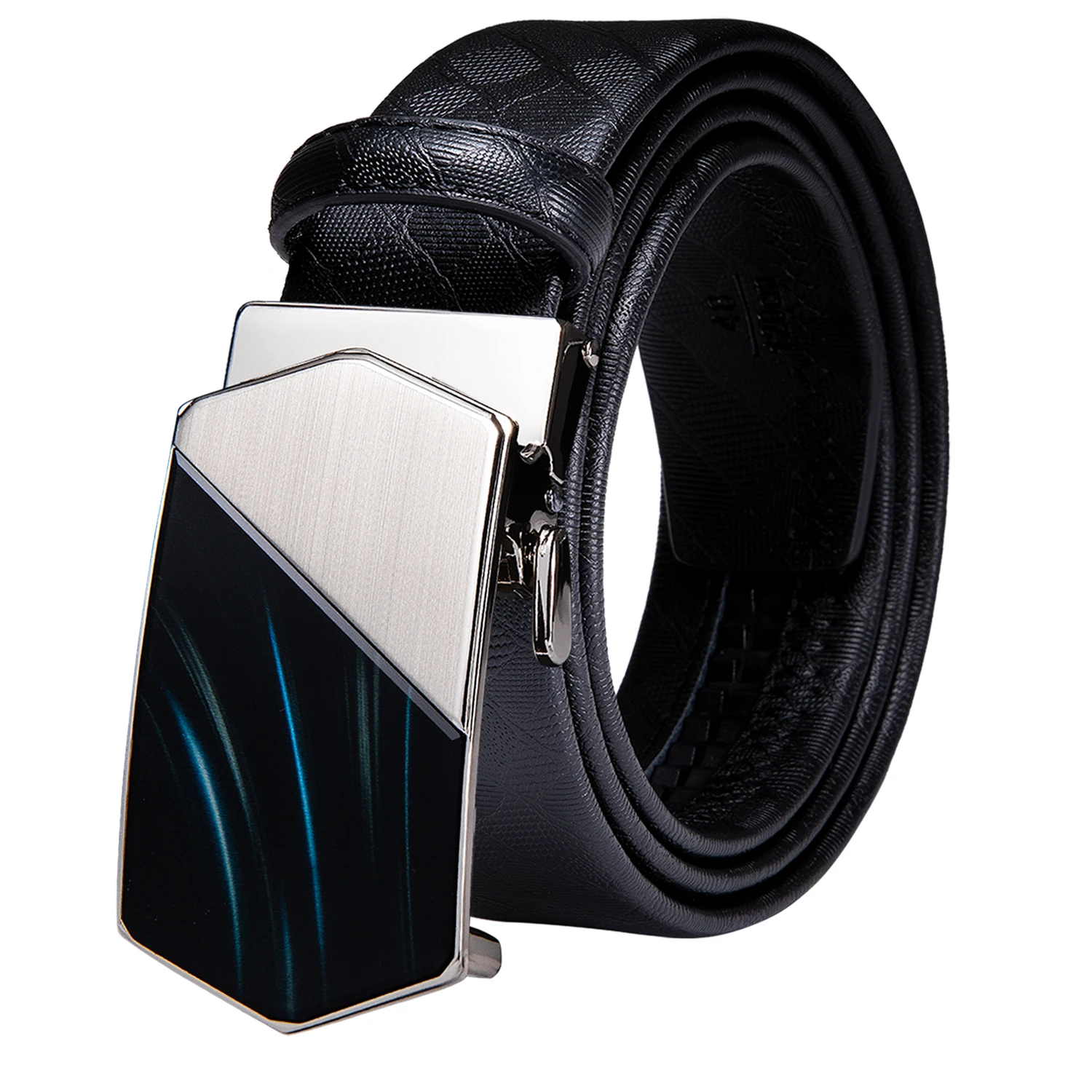 Ремень мужской кожаный, с автоматической пряжкой, черный, серебристый
