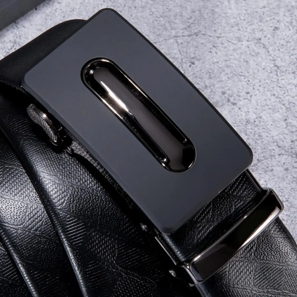Ремень мужской Hi-Tie, с автоматической пряжкой, черный, кожаный