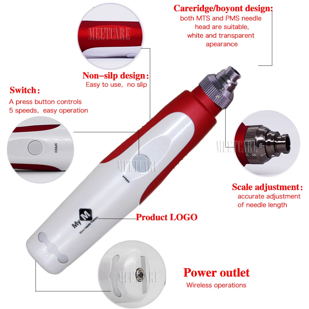 Профессиональный Электрический Микроиглы ручка с 5 шт. картридж иглы Отшелушивающий сужающийся поры мезотерапия Дерма ручка Красота Инструменты