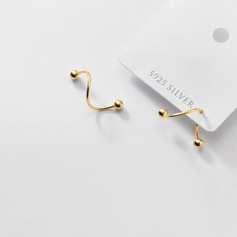LKO Настоящее серебро 925 пробы круглая бусина пряжка для ушей вращающаяся волна серьги-гвоздики для женщин Jewelrry простые ушные шпильки украшение для девочек