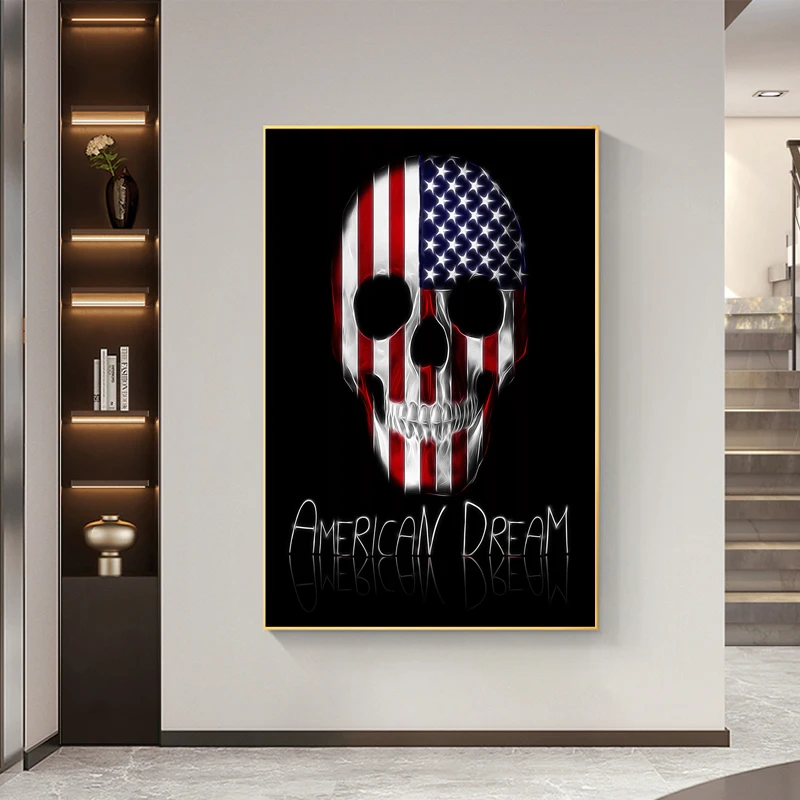 Абстрактная Картина на холсте Ace покер череп настенное искусство американский флаг лицо плакат печать Настенная картина для гостиной украшение для дома