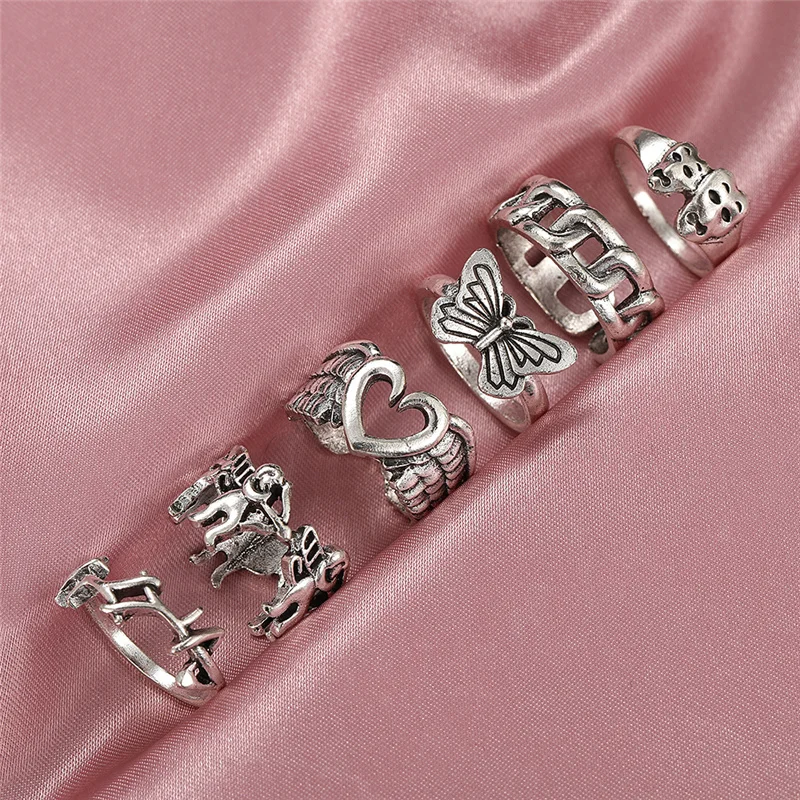 Женский винтажный набор колец в виде бабочки, серебристого цвета