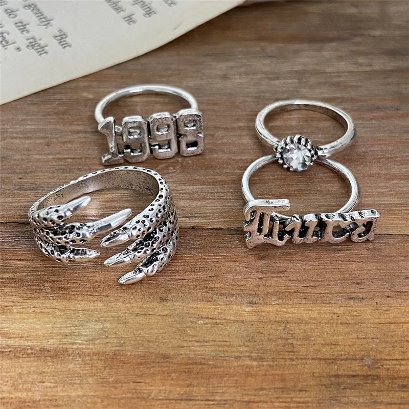 Комплект колец серебряного цвета в стиле панк для женщин, винтажные...