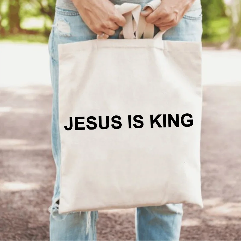 Женские сумки, Холщовая Сумка-тоут Jesus Is King Faith, христианские сумки для покупок, дорожные женские многоразовые сумки через плечо