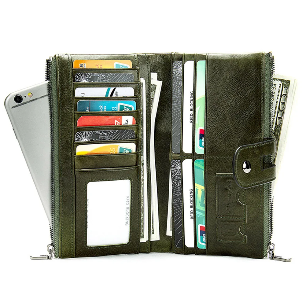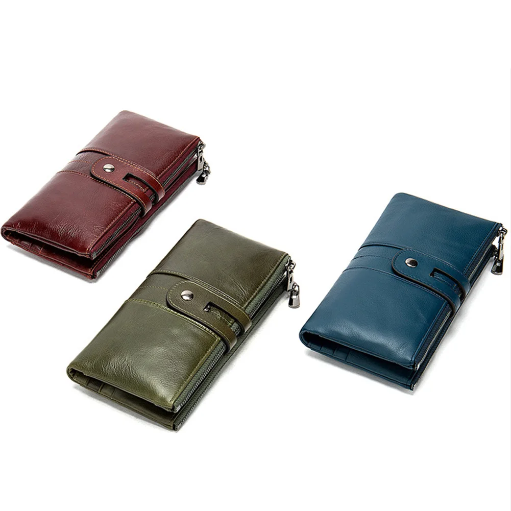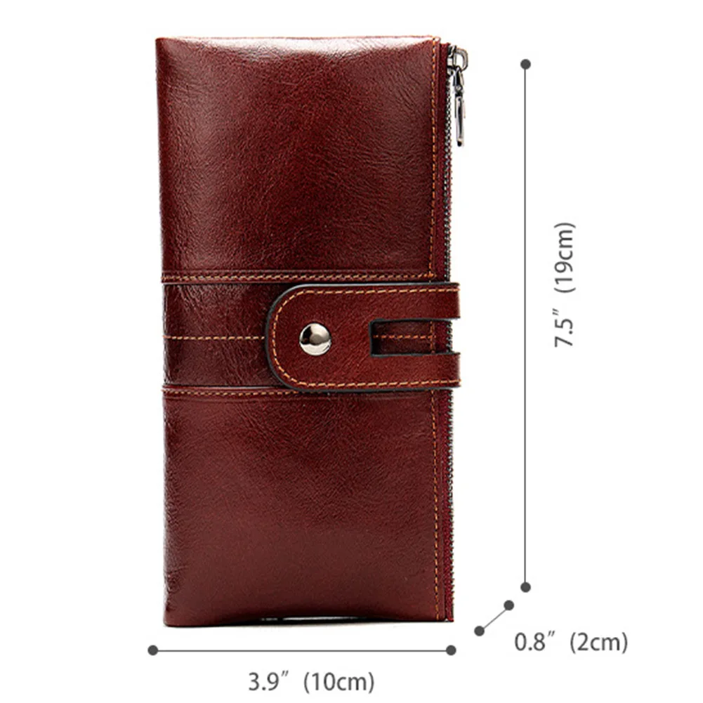 Женский кошелек из воловьей кожи на молнии, большой вместимости, с несколькими отделениями для карт, длинный женский кошелек, новинка