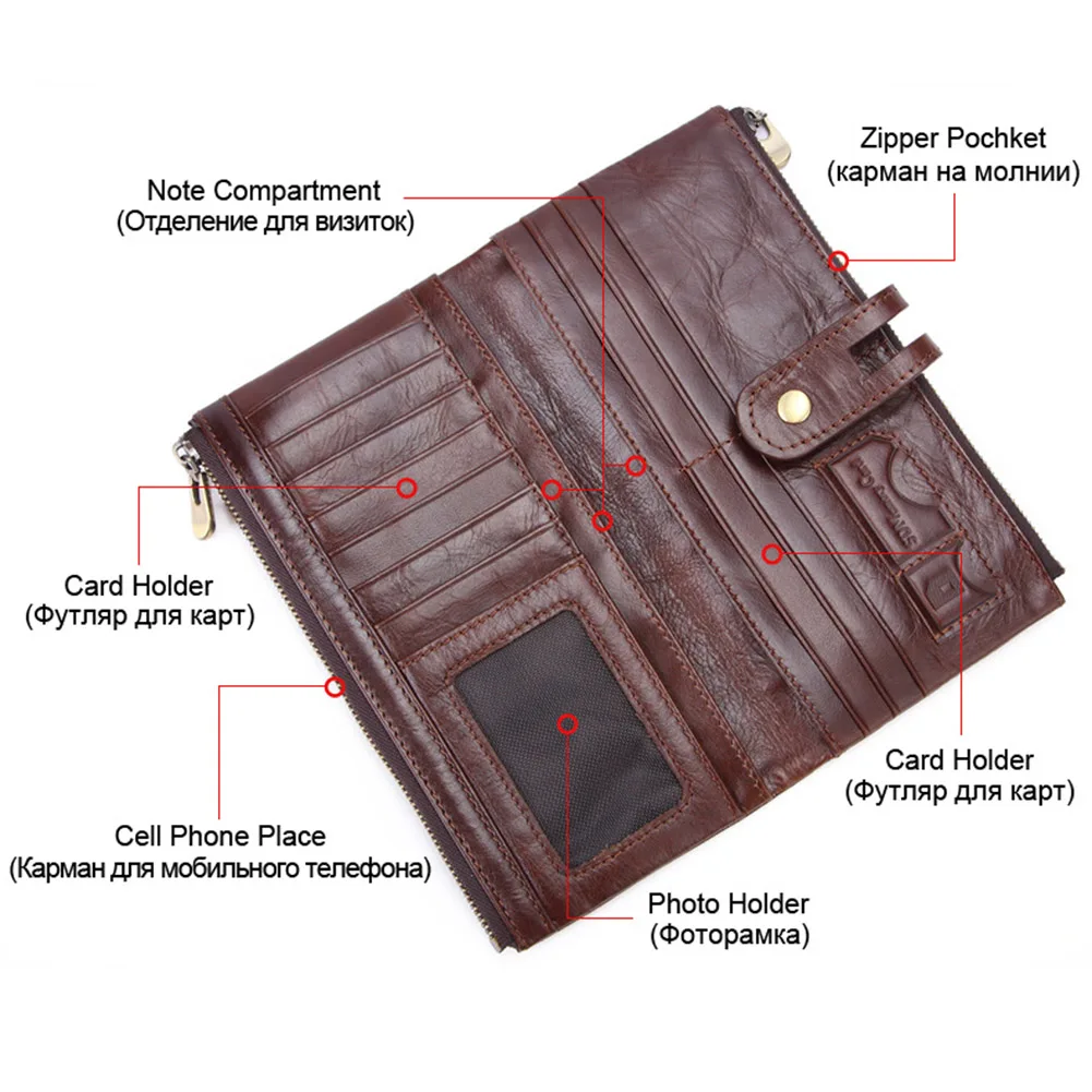 Длинный кошелек из натуральной кожи для мужчин и женщин, бумажник н...