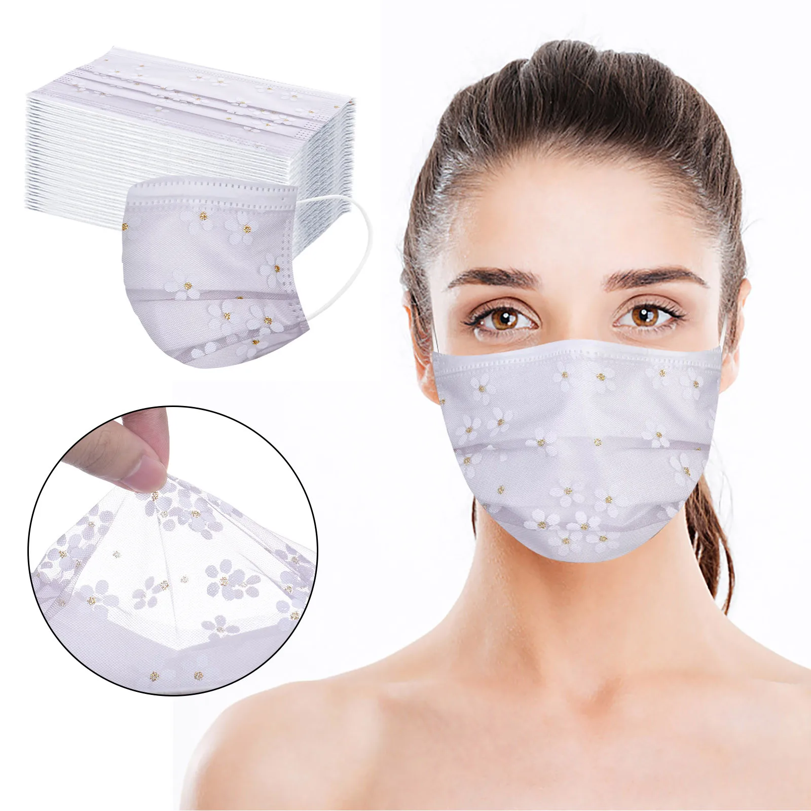 Маски для взрослых из сетчатой пряжи, одноразовые маски с цветами, четыре слоя, дышащие защитные маски для лица с заушными петлями, 1050 шт.