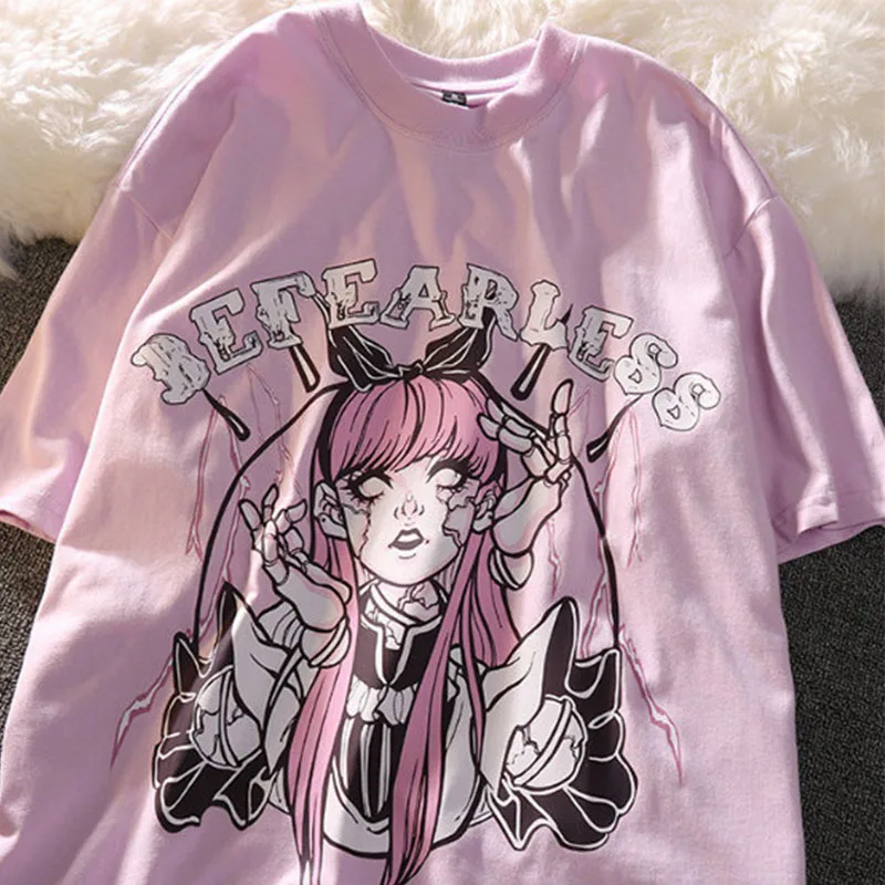 Женская футболка в стиле Харадзюку, свободная Готическая футболка в стиле панк, Харадзюку, уличная одежда, y2k, на лето