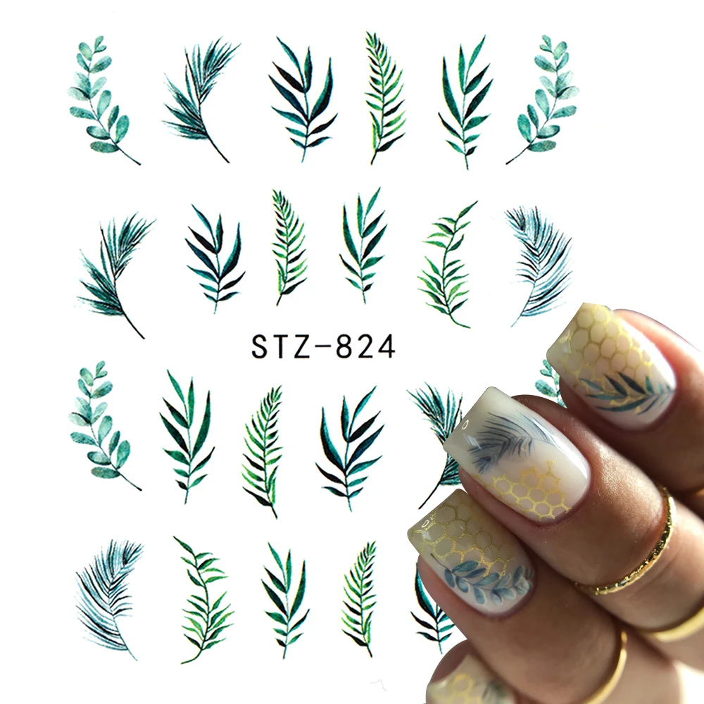14 шт. акварельные Водные Наклейки для ногтей с цветами, простые зеленые летние наклейки сделай сам, слайдер для маникюра, листья, водяные знаки для дизайна ногтей