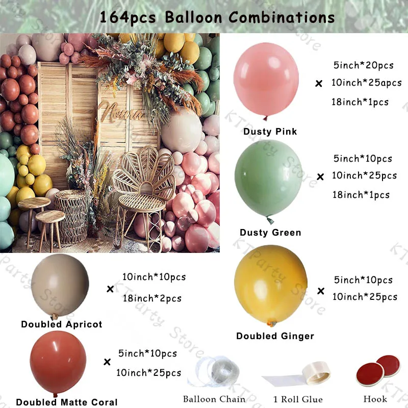 164 шт. матовый коралловый имбирный шар, двойная гирлянда, абрикос, пыльный, розовый, зеленый, детский праздник, пол, товары для дня рождения