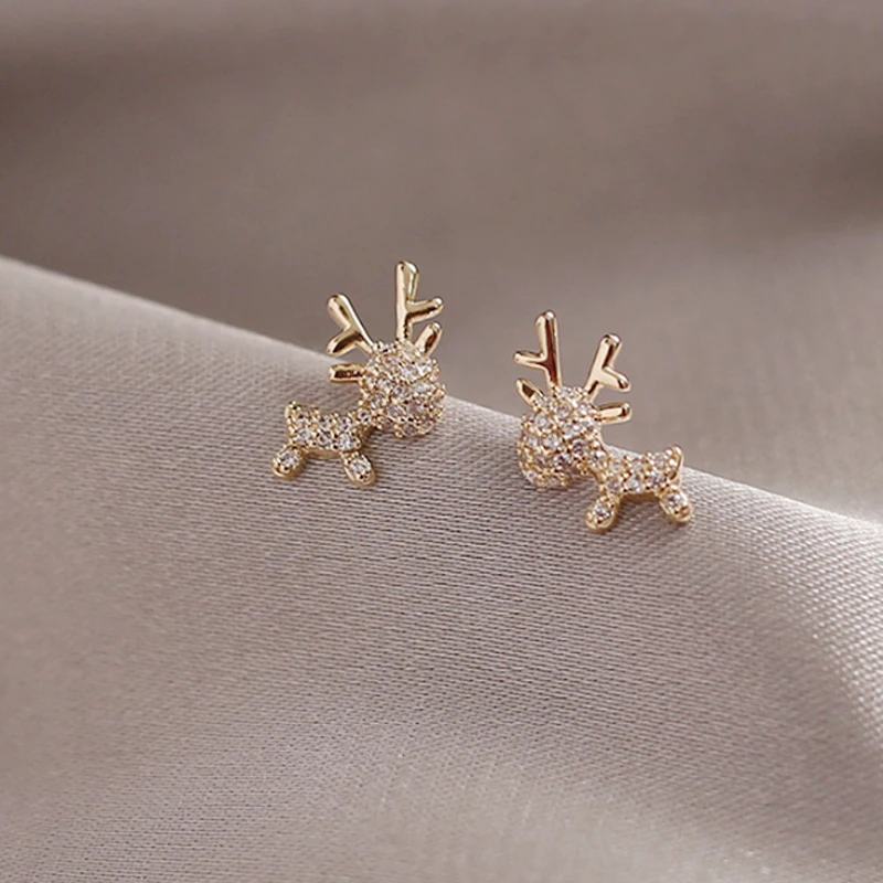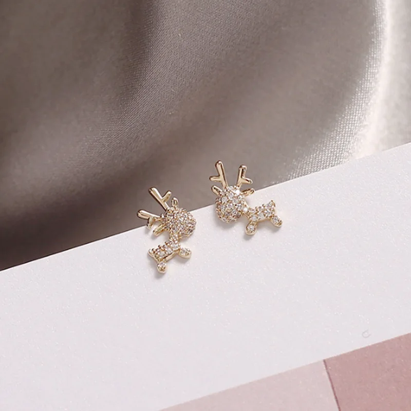 Маленькие простые серьги с цирконом в Корейском стиле, темпераментные милые серьги с оленями для женщин, подарок на день рождения, модные украшения