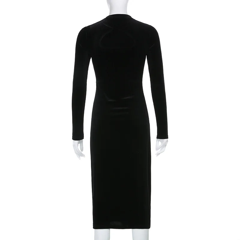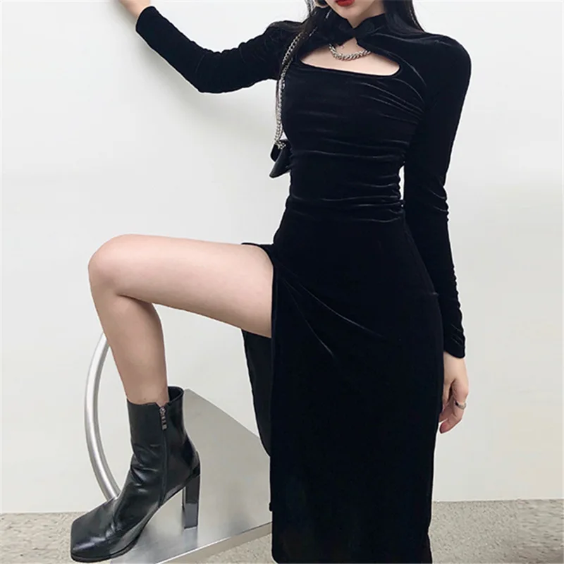 Женское бархатное платье с вырезами, черное облегающее винтажное ве...