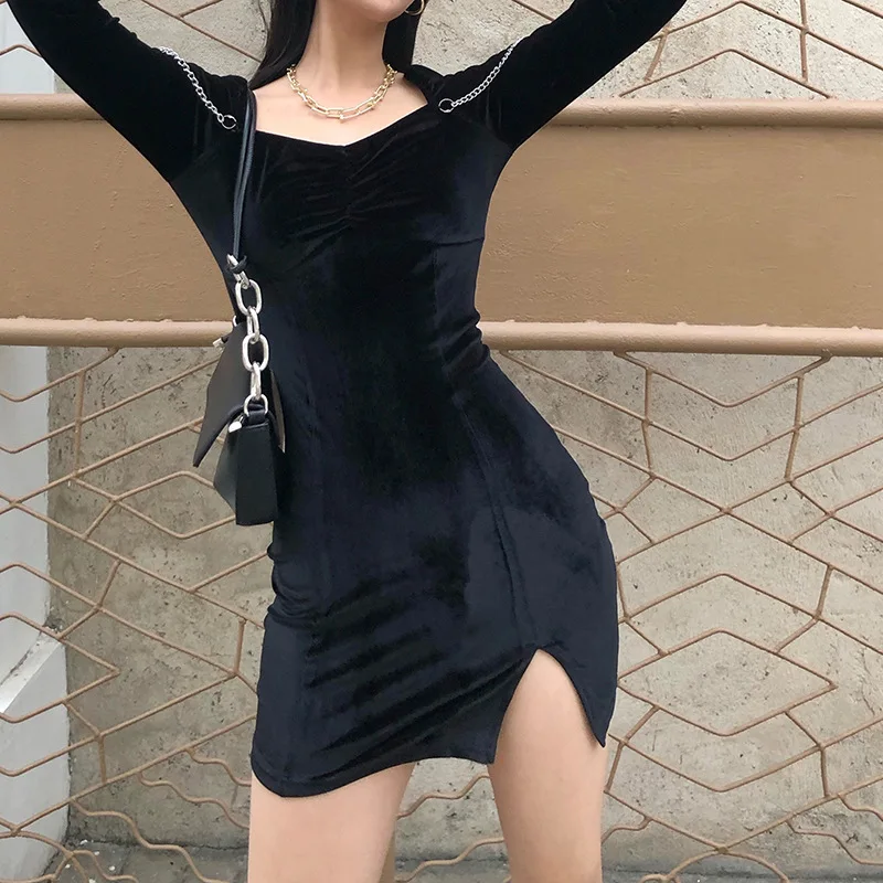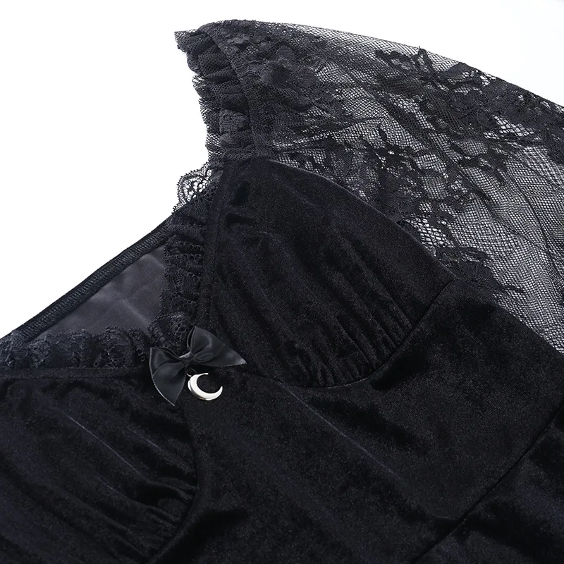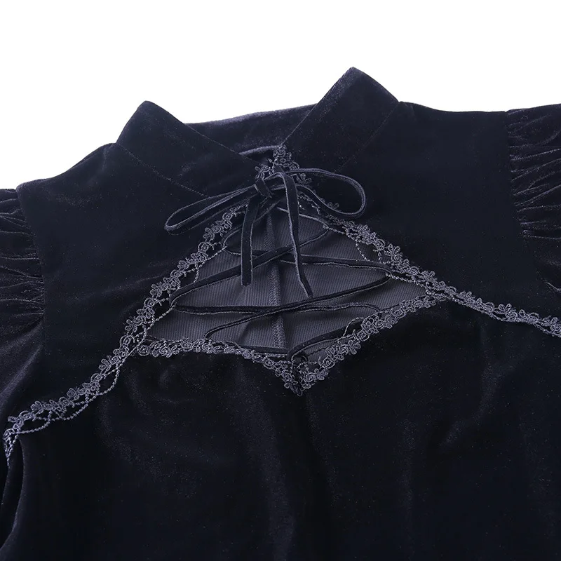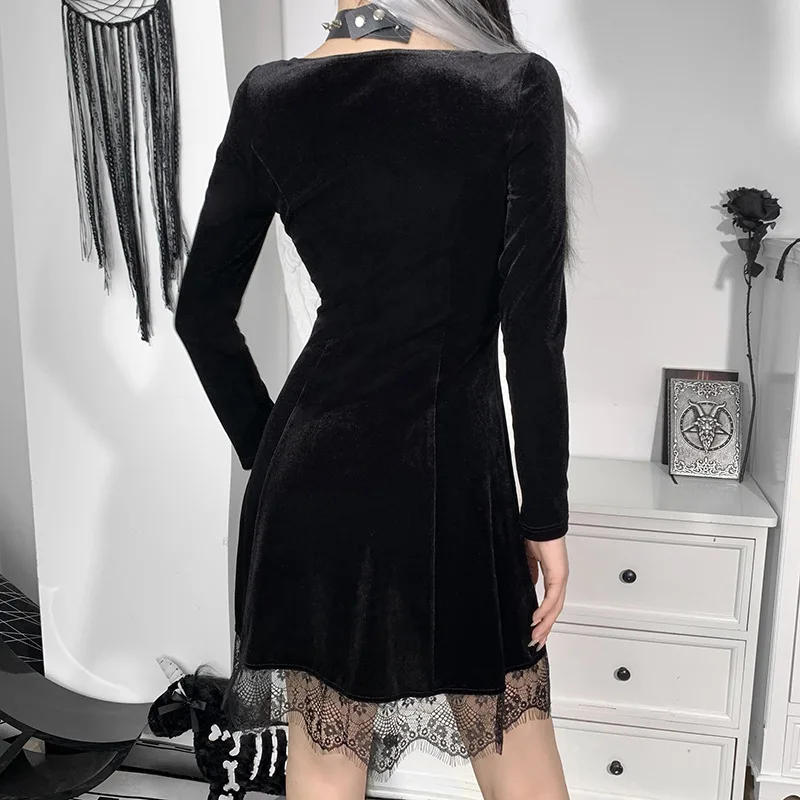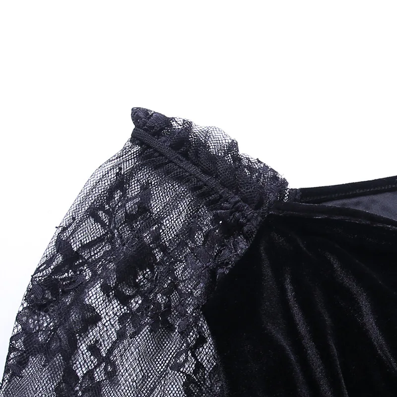 Женское велюровое платье Goth Dark, Осеннее привлекательное кружевн...