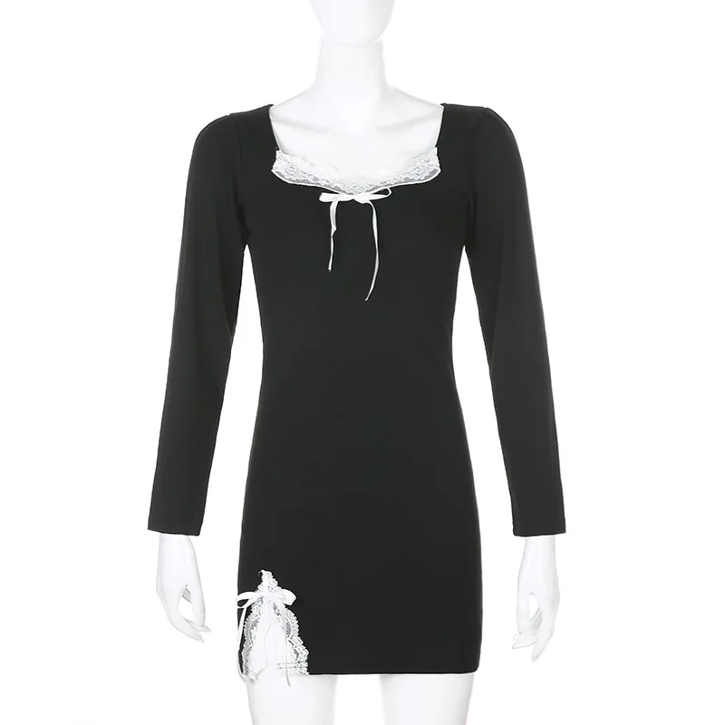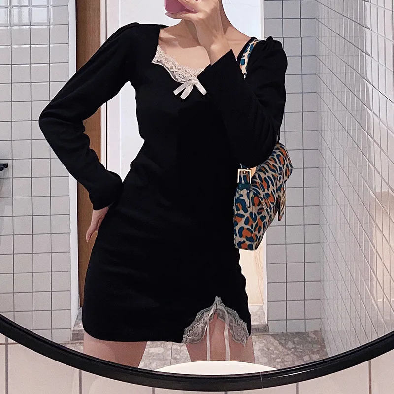 Женское кружевное мини-платье с длинным рукавом, в стиле Харадзюку
