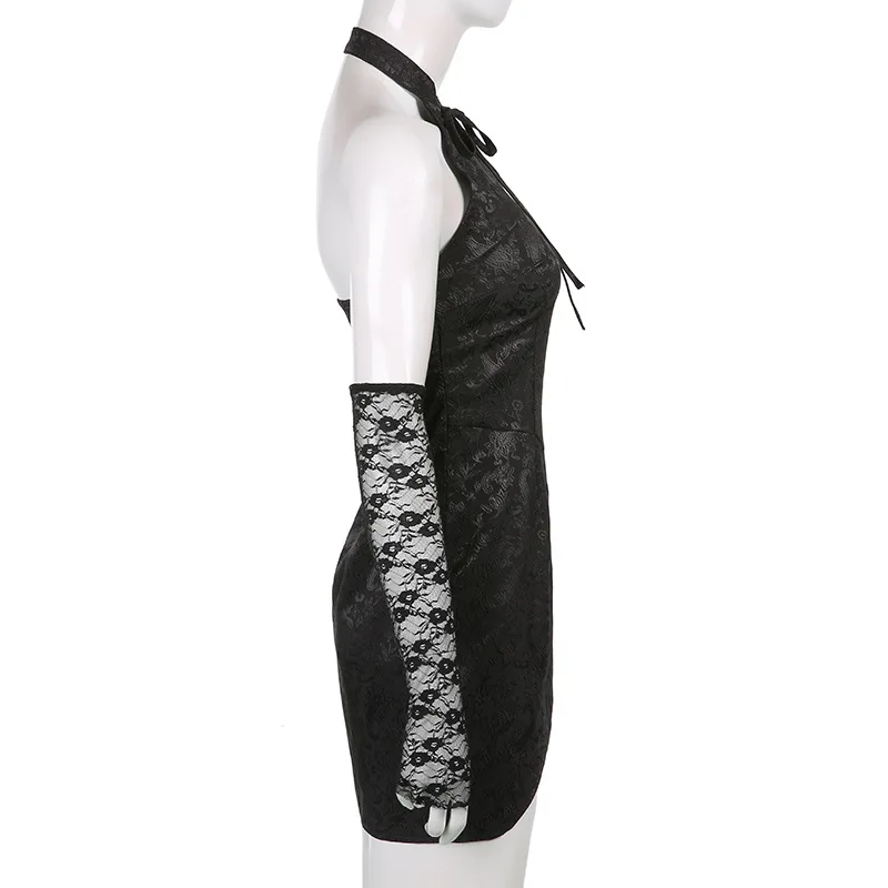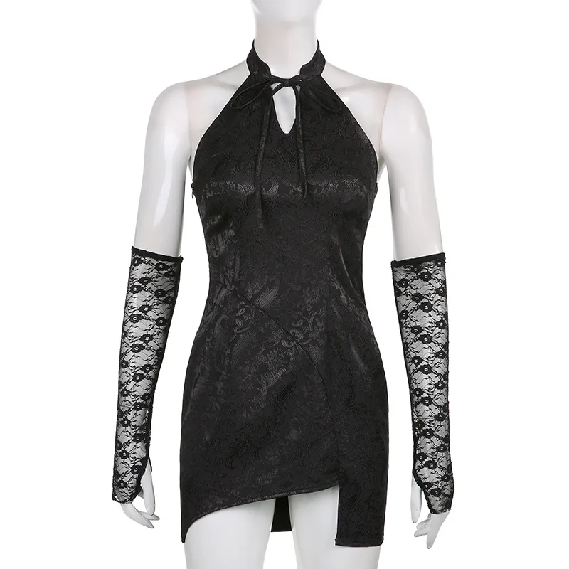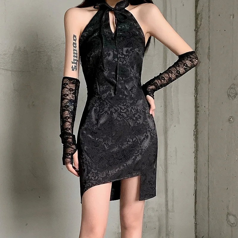 Женское Короткое платье в готическом стиле E-girl, черное облегающе...