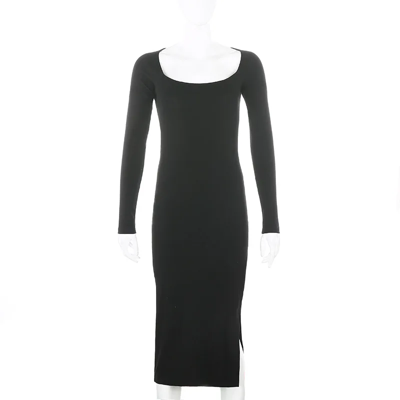 Женское винтажное платье с длинным рукавом, черное облегающее плать...