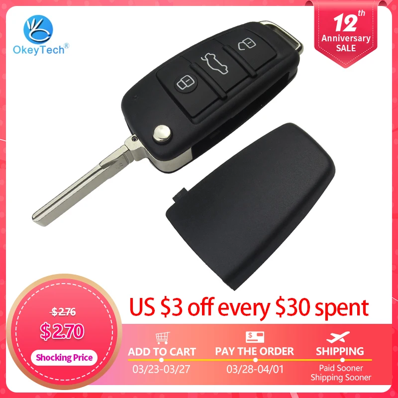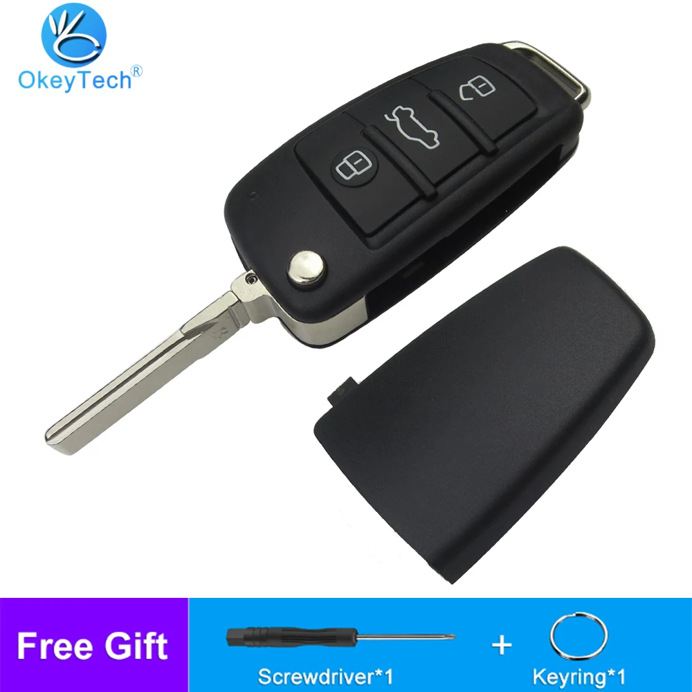 OkeyTech складной чехол-брелок с 3 кнопками и дистанционным управлением для Audi Q7 A3 A4 A6 A6L A8 TT чехол с необработанным лезвием высокого качества