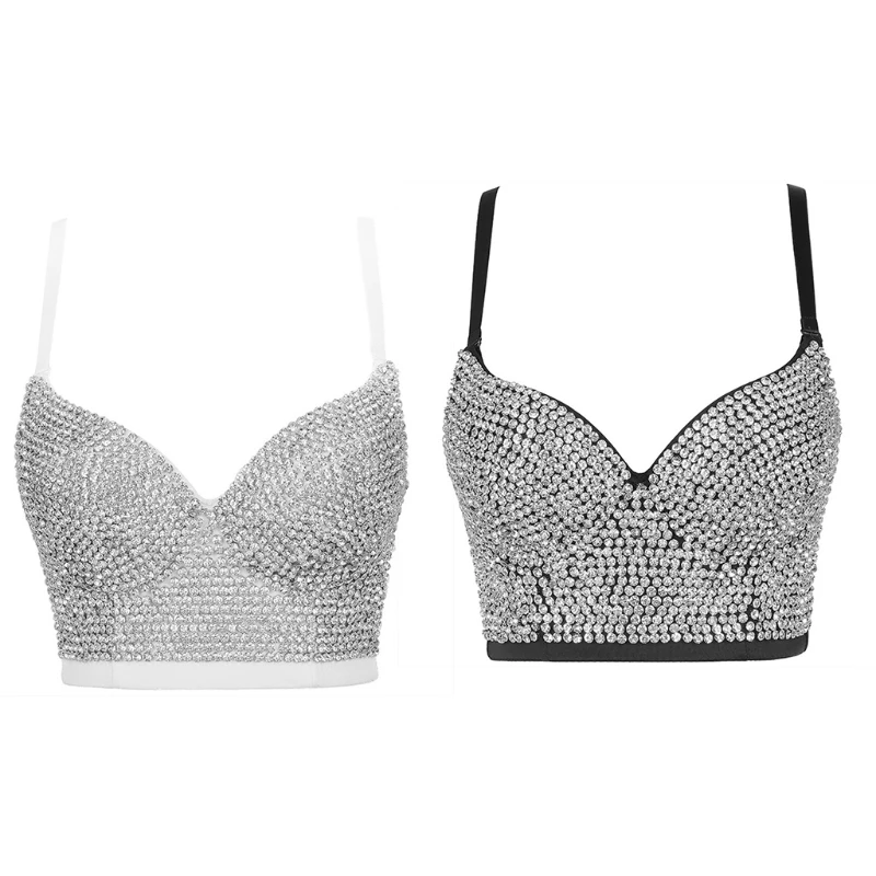 Женский Блеск Стразы бюстгальтер пуш-ап бюстье на косточках сексуальный панк-корсет
