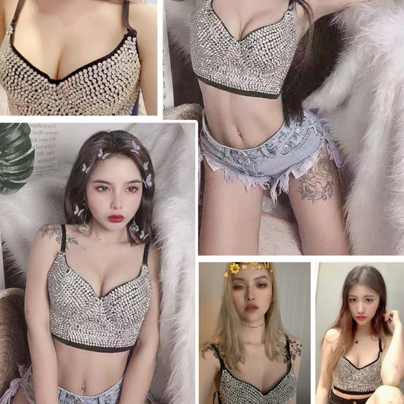 Женский Блеск Стразы бюстгальтер пуш-ап бюстье на косточках сексуал...