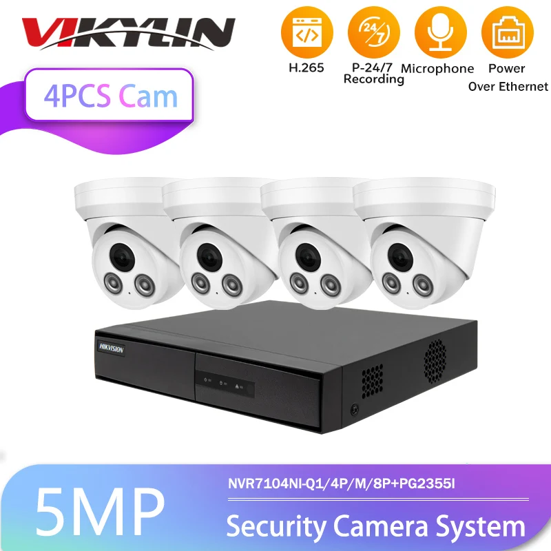 Hikvision Совместимая система наружного видеонаблюдения 5 Мп HD 4 канала 4PoE NVR комплект с аудио камерой обнаружения человека IP набор