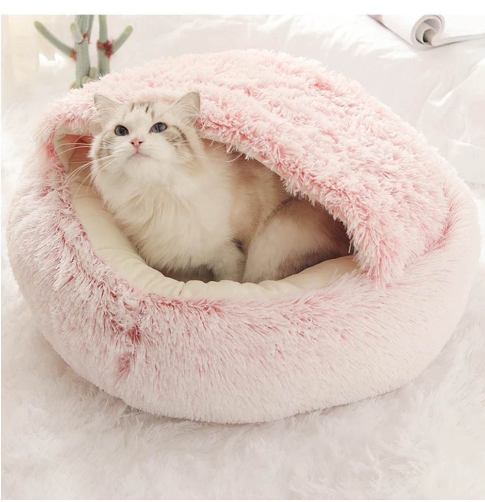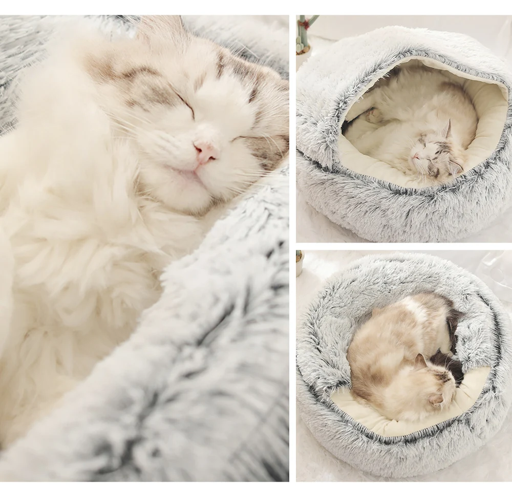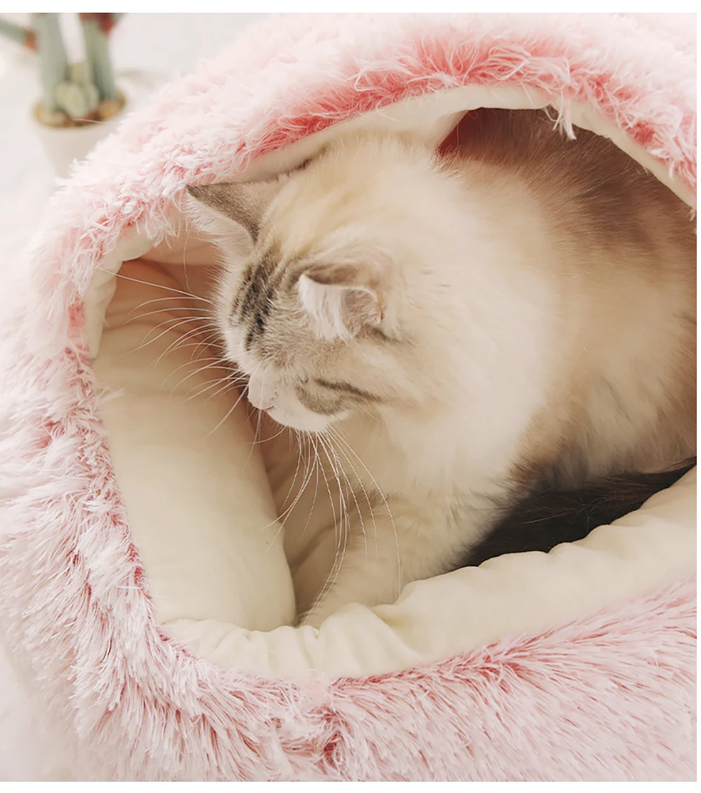 Лежанка для домашних животных, собак, кошек, полузакрытое гнездо для кошек для глубокого сна, удобная зимняя кровать для кошек, маленький коврик, корзина, мягкая будка