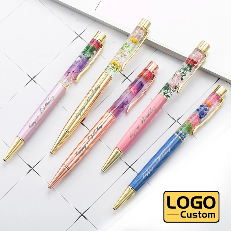 Модная иммортическая Цветочная фоторучка, рекламная металлическая ручка с логотипом на заказ, с гравировкой текста, студенческие канцелярские товары, оптовая продажа