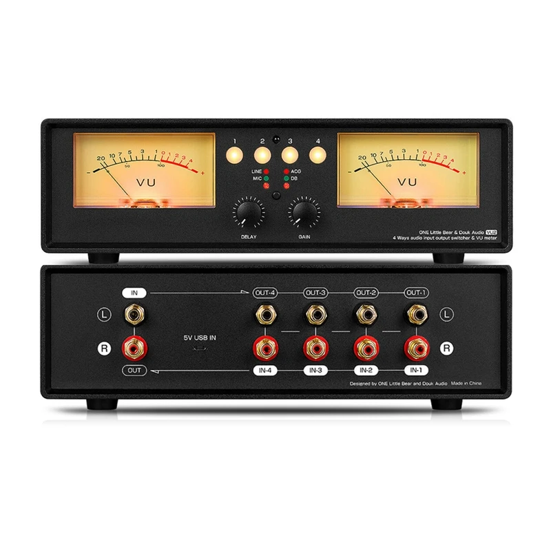 Аудио разветвитель MIC + LINE Dual VU Meter, 4-ходовой переключатель, индикатор уровня звука