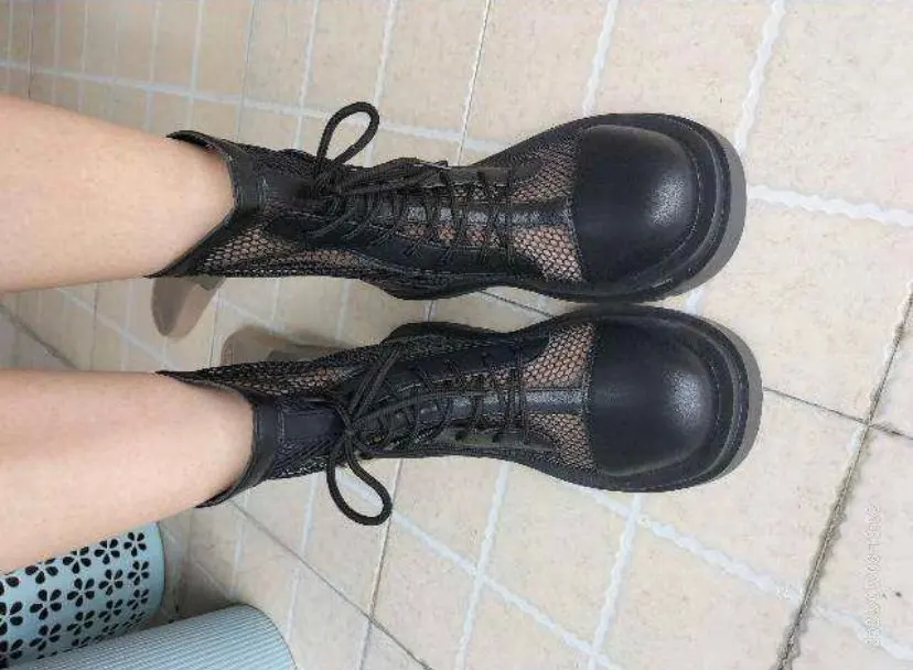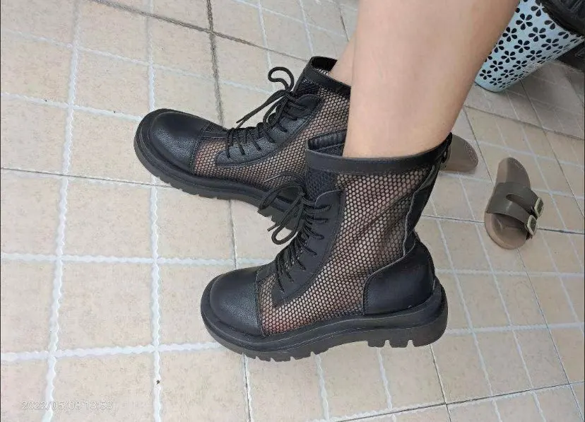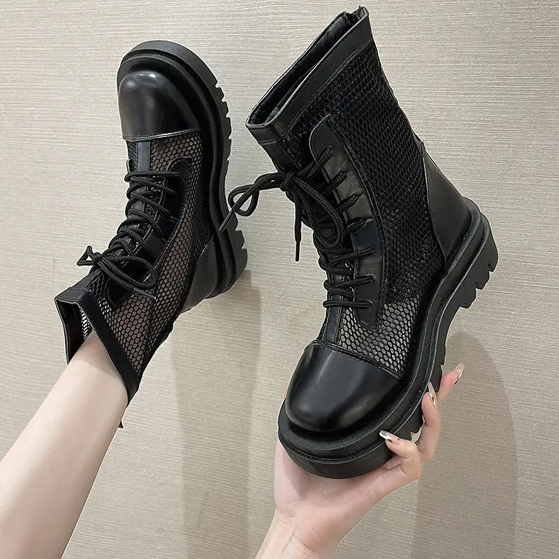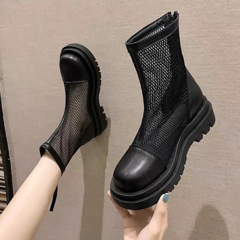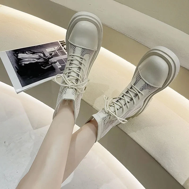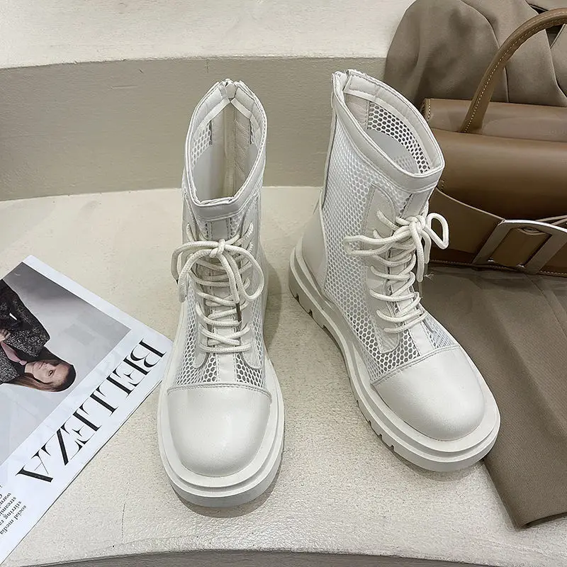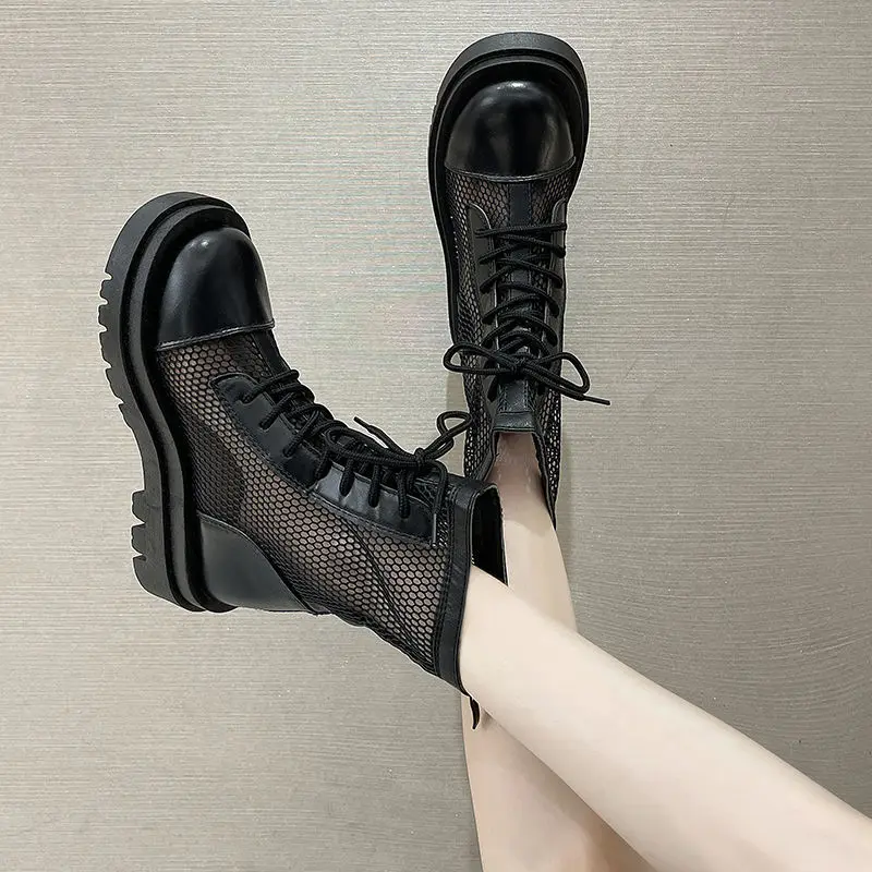 Ботильоны женские сетчатые на шнуровке, дышащие модные повседневные ботинки на молнии, на плоской платформе, летняя обувь