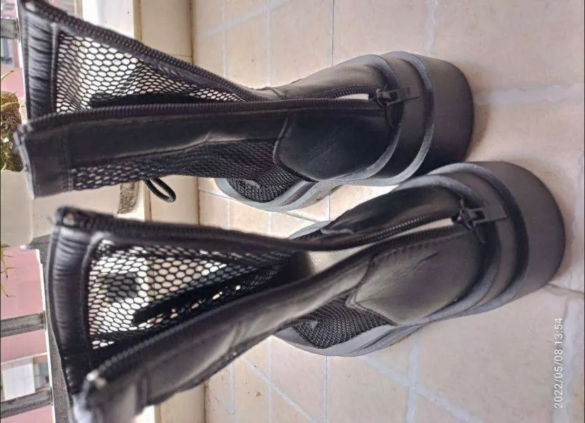 Ботинки лёгкие, не давят, не натерли с первого раза. На 37 размер 38 нормально. Сделаны аккуратно, но сильный запах присутствует. Пока не ушёл. На лето и тёплую сухую осень и весну рекомендую