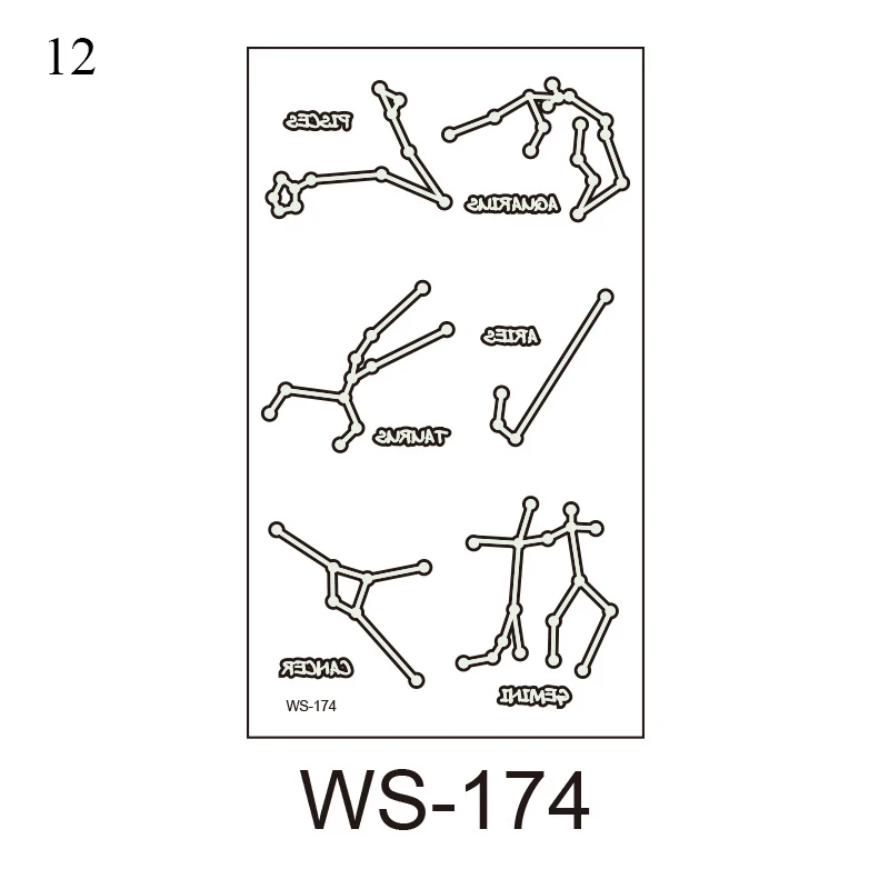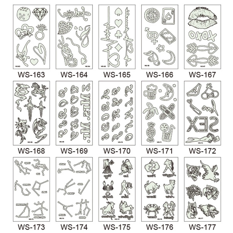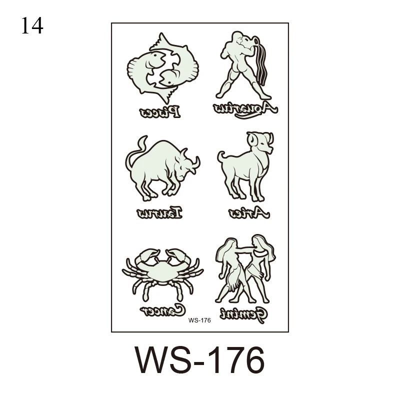 Тату-наклейка переводная водостойкая светящаяся в темноте, 1 лист