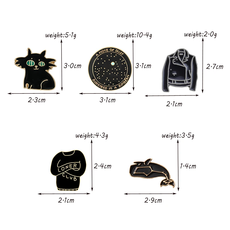 Коллекция Dark Black, заколка для лацкана, кошка, рыба, куртка, женская, мужская сумка, эмалированная заколка, аксессуары