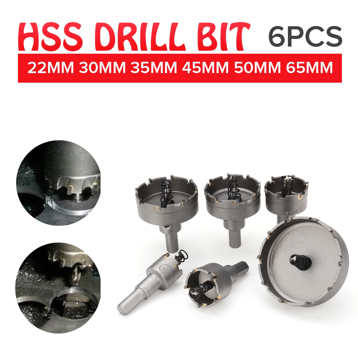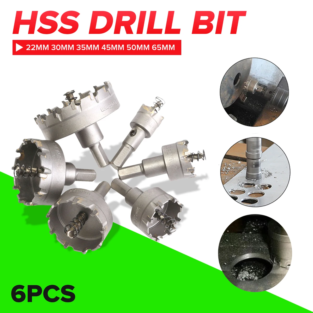 Материал: карбид и легированная стальДиаметр: 22 - 65 мм (22 мм 30 мм 35 мм 45 мм 50 мм 65 мм)16 - 32 мм (16 мм, 18 мм, 20 мм, 22 мм, 25 мм, 32 мм)Общая длина: около 68 ммДиаметр хвостовика: около 9 ммКоличество: 1 комплект (6 шт.)