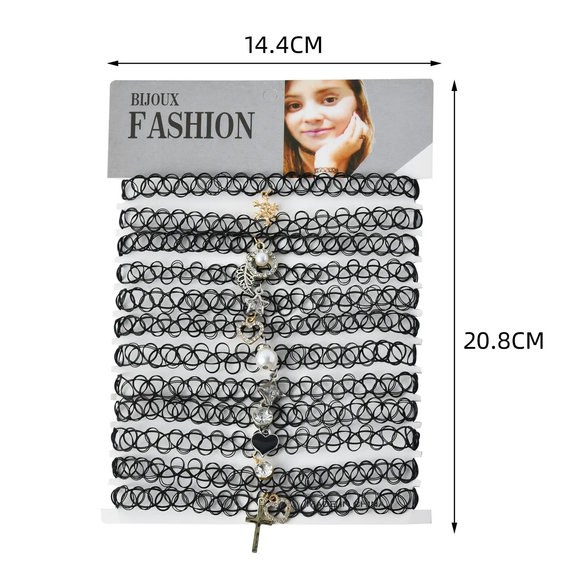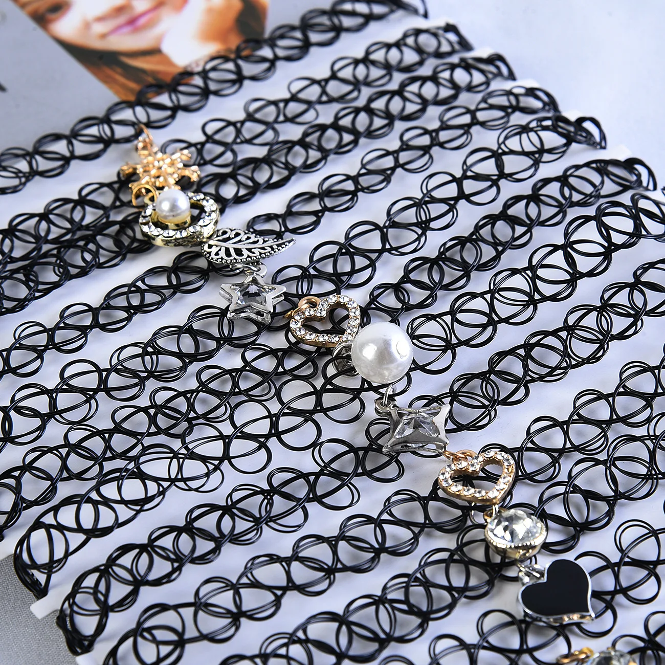12 шт.компл. винтажное ожерелье Hippy Чокер-тату из эластичного материала, эластичное черное ожерелье на леске для женщин и девочек, в стиле панк, ретро, готические украшения