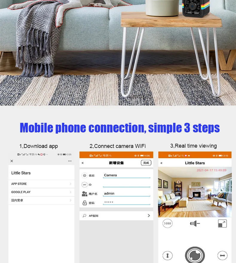 Мини-камера HD 1080P с функцией ночного видения и поддержкой Wi-Fi