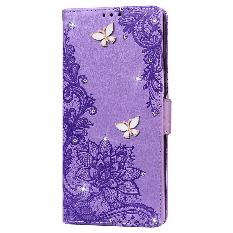 Роскошный кожаный чехол для телефона с кружевом и цветочным принтом...