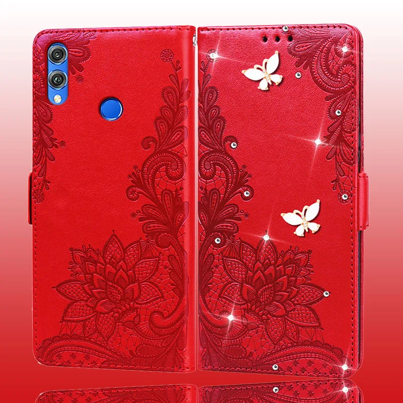Чехол-Кошелек для Huawei Honor 8X, кожаный, блестящий