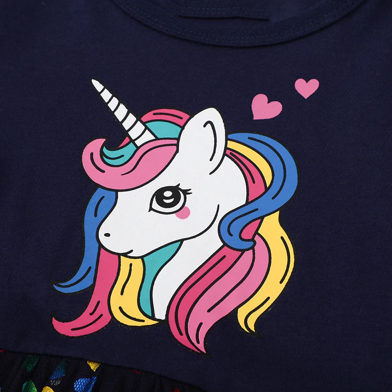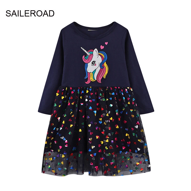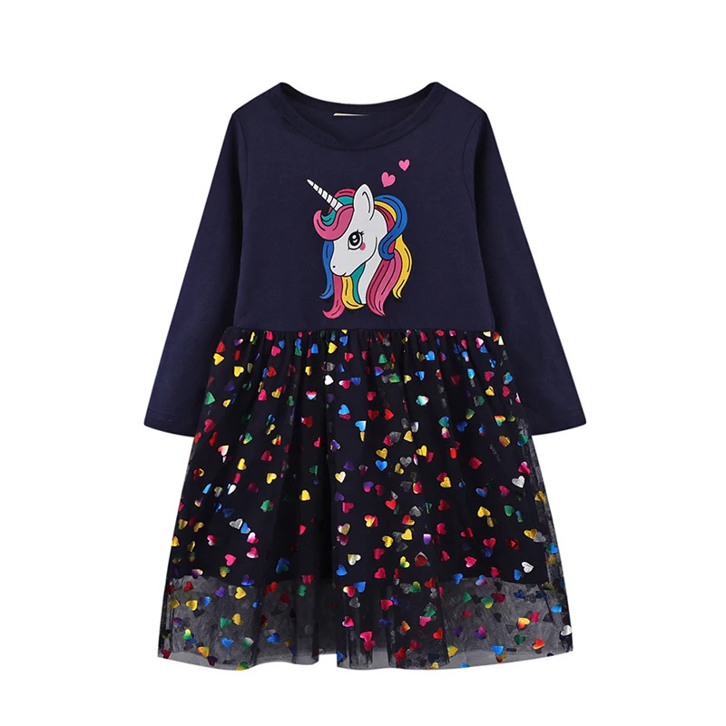 Детское Сетчатое платье с единорогом, с длинным рукавом, осень, 2021 хлопок