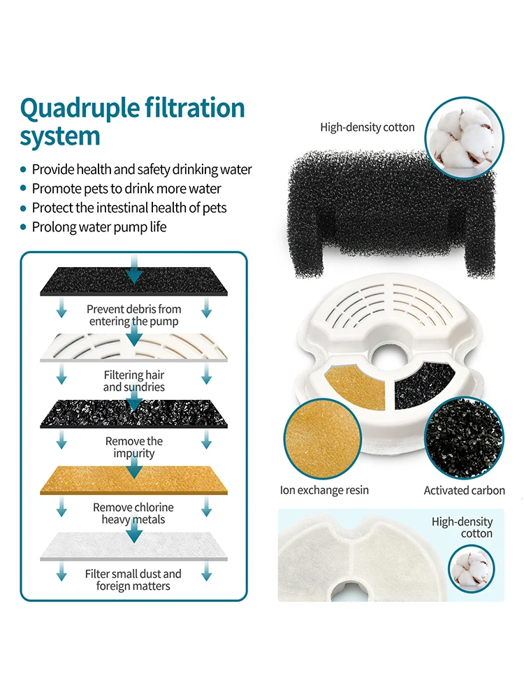 Сменный фильтр с активированным углем для питьевой воды для кошек, заменяемые поролоновые фильтры для домашних животных, собак, квадратный дозатор фонтана