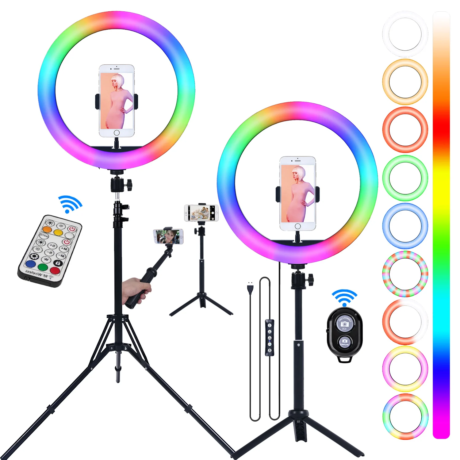 1x13 дюймов RGB световое кольцо1 х мини Настольный Штатив1 х держатель для телефона1 х шаровая Головка1 x пульт дистанционного управления Bluetooth