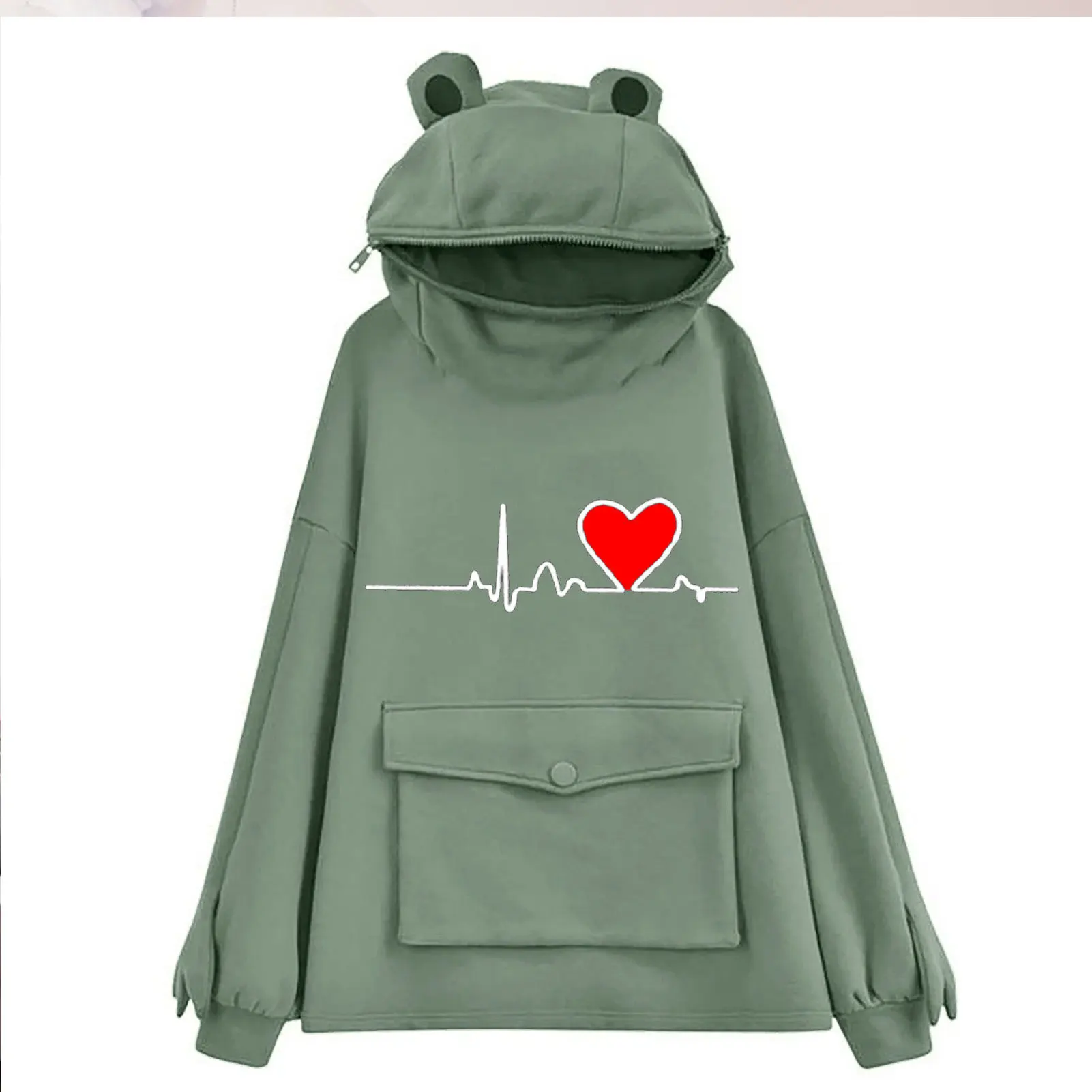 Женские толстовки, свитшоты y2k, флисовый мультяшный свитер с капюшоном, одежда, ленивая ветровка Love Frog, куртка, кавайная Аниме Толстовка