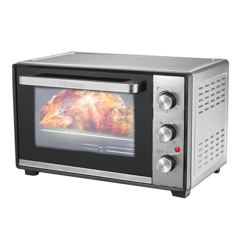 Мы рады представить Вашему вниманию новый пионер-электрическая печь mo5020g с конвекцией, грилем и двойным закаленным стеклом, наша продукция производится в Китае. И на даче.Пионер электрической печи является компактным аналогом стационарной электрической печи, но в то же время экономит потребление энергии из-за меньших размеров рабочей камеры.Наша мини-печь оснащена функцией конвекции, это основное отличие от аналогов. Благодаря этой функции еда запекается равномерно со всех сторон. Это достигается с помощью вентилятора, расположенного на боковой стене. В свою очередь, обеспечивает постоянную циркуляцию горячего воздуха внутри камеры. Таким образом, существует одинаковая температура со всех сторон, которая позволяет еде равномерно испечь и покрыть румянами, аппетитной поверхностью.В электрической духовке вы можете печь мясо или овощи, готовить рыбу, а также различные торты. Еда, приготовленная в компактной духовке, более полезна, в отличие от сковороды, так как готовка в ней возможна без добавления масла или с минимальным количеством.Пионерская печь выполнена в стильном, лаконичном дизайне. Крышка изготовлена из металла, дверные ручки и панельные регуляторы покрыты хромом. Двойное закаленное Термостойкое стекло обладает повышенной прочностью и защитит вас от случайных ожогов. На теле нет лишних деталей, только необходимые элементы, поэтому он выглядит современным и будет отлично смотреться в любом интерьере.Печь приятна в использовании, проста в эксплуатации. Вам просто нужно установить желаемый режим, установить таймер, и вы можете сделать свой бизнес. После завершения работы вы получите звуковой сигнал.Печь оснащена электромеханическим шпинделем и электрическим грилем.Обеспечивает 6 режимов нагрева:-Работают оба нагревательных элемента, включая конвекцию;-Верхний нагревательный элемент работает и конвекция включена;-Оба нагревательных элемента работают;-Работает с верхним нагревательным элементом и вращается на шарнире;-Оба нагревательных элемента работают, вращаются и конвекции включены.Вы можете регулировать температуру от 100 до 250 градусов с шагом 10 градусов, а также установить таймер на 60 минут с шагом 5 минут.Наша модель имеет механическое управление, индикатор ВКЛ-ВЫКЛ, внутреннее освещение и сигнал окончания работы.Внутренняя камера 38 литров изготовлена из стали, длина шнура 0,85 метров.Мини-печь оснащена всем необходимым, чтобы воплотить в жизнь Ваши гастрономические идеи:-Металлическая решетка шириной 29,5 см, длиной 39 см;-Плоский счетчик-2 шт. Их размер: длина 39 см, ширина 29 см, глубина 2,5 см;-Длина вернира составляет 38, 5 см, а ширина в самой широкой точке-5 см;-Держатель для неir длины 32 см, ширина 12 см;-Длина ручки 20 см, ширина 6,5 см.Размер печи: длина 53 см, высота 31 см (с ножкой 33 см), глубина 33 см (высота регуляторов 2,5 см).Шнур 85 см.Дверь электрической печи открывается сверху вниз.С этой стильной и простой в использовании мини-духовкой вы можете обжарить всю птицу на позвоночнике, испечь пышный торт или просто пить дома.Упаковочный листЭлектрическая духовка, Металлический гриль, плоский лист (2 шт.), поворотный, держатель, ручка, гарантийный талон, Инструкция на русском языке.