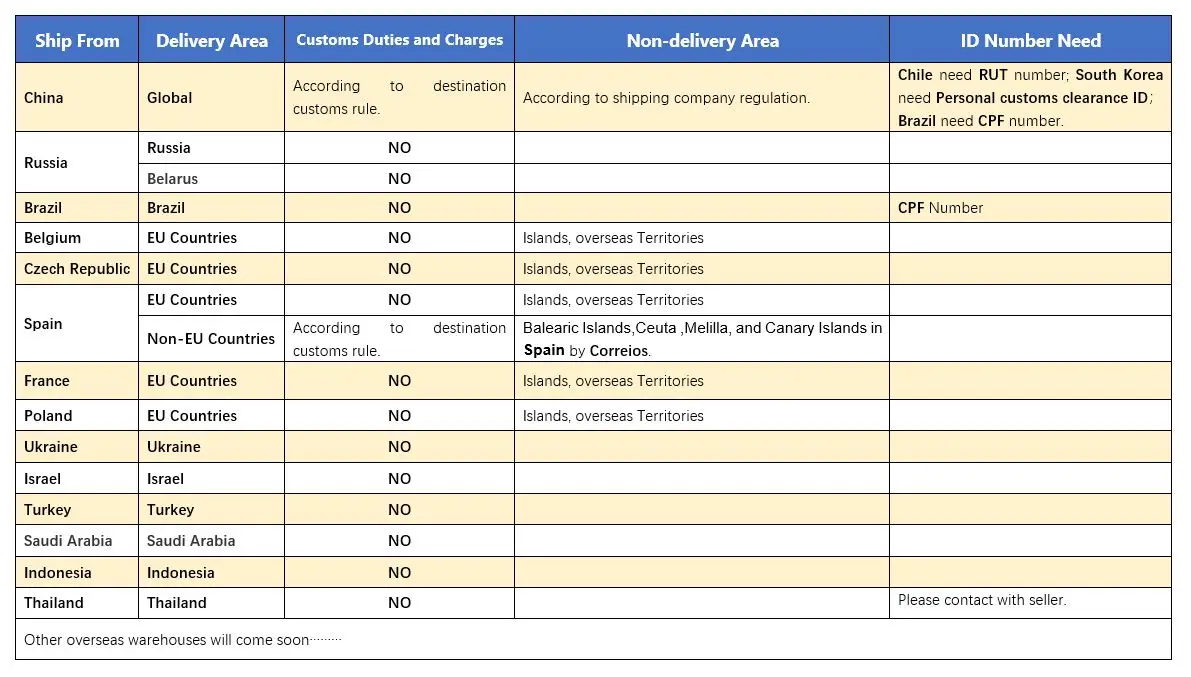 3. Таможенные пошлины и налоги не включены в стоимость доставки.