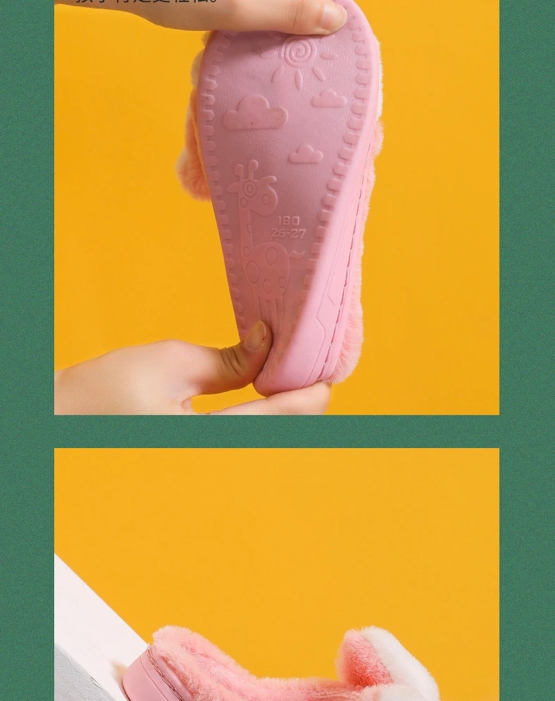 Милые меховые тапочки для мальчиков и девочек; Новинка 2022 года; Зимние детские плюшевые тапочки с кроликом; Пушистые домашние тапочки на плоской подошве