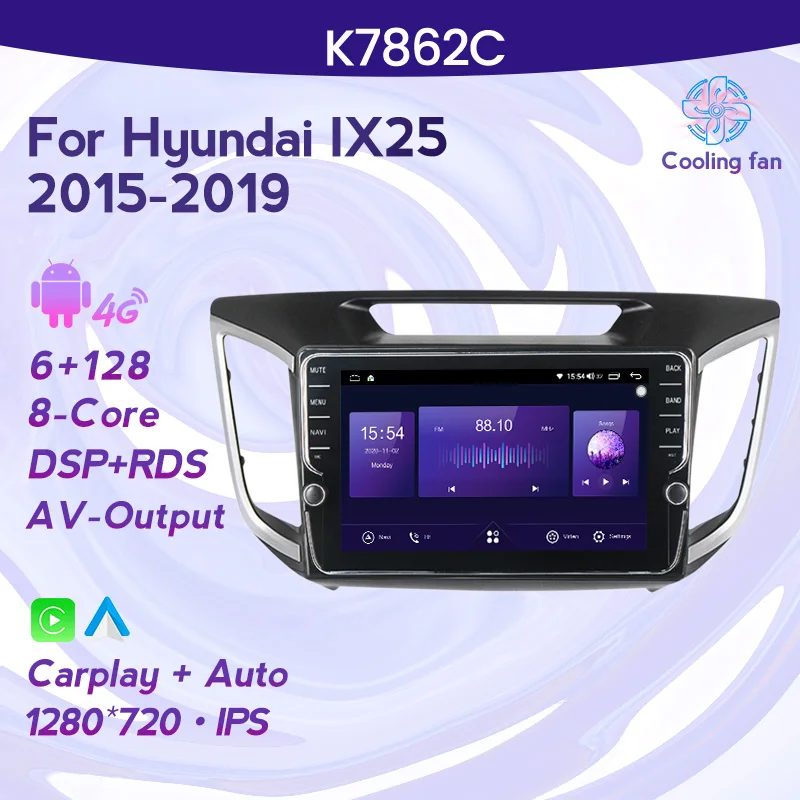 Автомобильное радио, мультимедийный GPS-навигатор для Hyundai Creta IX25 2015, 2016, 2017, 2018, 2019, Wi-Fi, BT, Carplay, Android, вентилятор охлаждения автомобиля, IPS